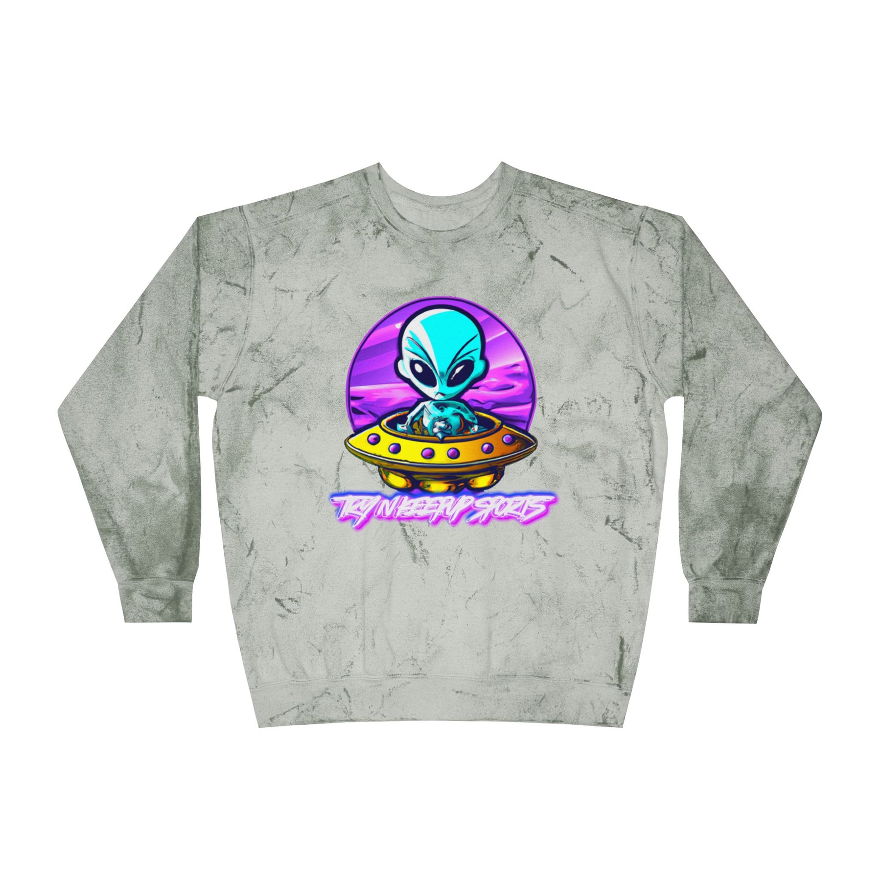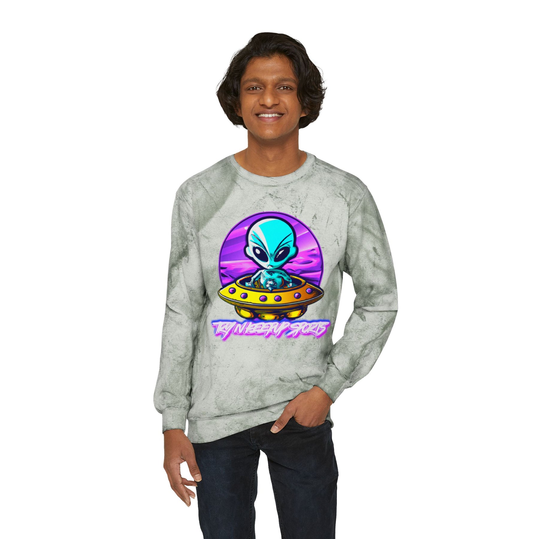 Color Blast Alien Crewneck Sweatshirt – Fun Unisex Apparel for UFO Enthusiasts